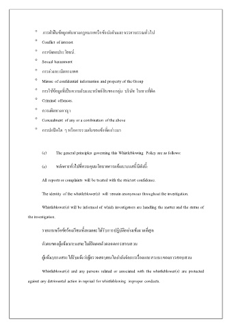 (c) หลักการทั่วไปที่ควบคุมนโยบายการแจ้งเบาะแสนี้มีดังนี้:
