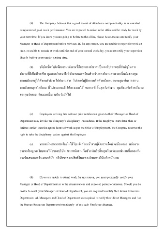 (b) บริษัทเชื่อว่าบันทึกการมาทํางานที่ดีและตรงต่อเวลาเป็นองค์ประกอบที่สําคัญในการ