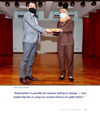 Darren Tan, on the left. “Redemption is possible for anyone willing to change — true leadership lies in using our second chances to uplift others.” 30 Years of Service and Leadership 107