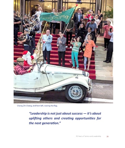 Chong Zhi Cheng, 2nd from left, waving the flag. “Leadership is not just about success — it’s about uplifting others and creating opportunities for the next generation.” 30 Years of Service and Leadership 31