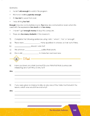 7) Complete the following sentences using ‘who’, ‘whom’, ‘too’ or ‘enough’.
