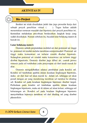 ke potensial air rendah melalui membran semipermeabel. Potensial air