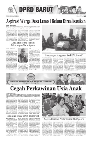 KUALA KURUN, PPOST pajak yang dibayarkan akan di- Hulu Utara. Di desa itu, hingga Segera Usulkan Perda Terkait Multiyears