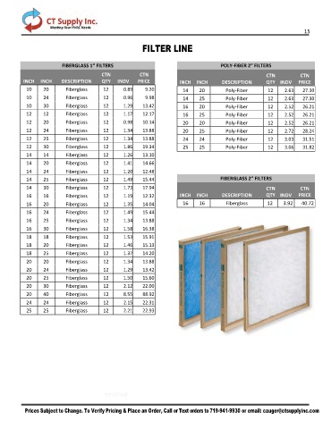 14 25 Fiberglass 12 1.49 15.44 FIBERGLASS 2” FILTERS