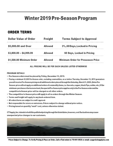 • Placing a minimum $1,500 Pre-Season order, excluding commodities, on or before Thursday, December 13, 2019 guarantees