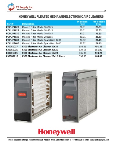 HONEYWELL PLEATED MEDIA AND ELECTRONIC AIR CLEANERS