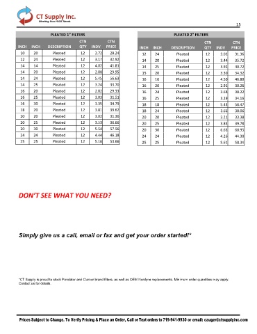PLEATED 1” FILTERS PLEATED 2” FILTERS