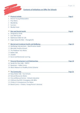 Contents of Initiatives on Offer for Schools