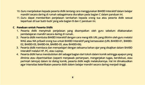 mandiri secara daring di rumah sebagaimana diuraikan pada bagian C dalam panduan ini.