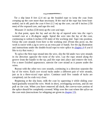 and instructions under the double-braid rope-to-wire splice in chapter 4 if you’d