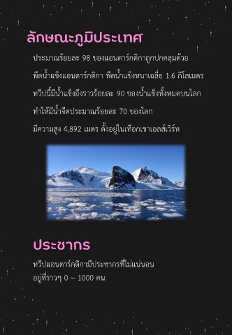 ทวีปนี้มีน้ าแข็งถึงราวร้อยละ 90 ของน้ าแข็งทั้งหมดบนโลก