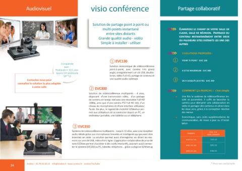 Protocole H.323, pro- point-à-point, avec caméra très grand ② 4 SITES MAXIMUM - EVC 300