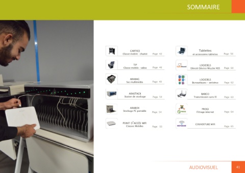 Classe mobile : chariot Page 42 et accessoires tablettes Page 56