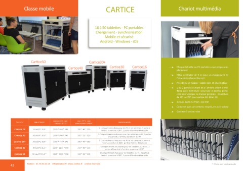 Cartice 40 40 tab/PC 15,6’’ 1109 * 1170 * 590 350 * 40 * 350 2 Compartiments coulissants pour les tablettes ou les PC. 2