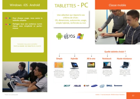 Windows - iOS - Androïd tablettes - pc Classe mobile