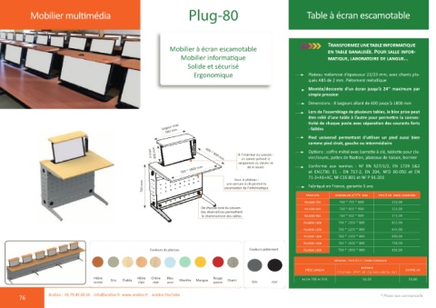 Couleurs du plateau Couleurs piétement Plug80-1800 760 * 1800 * 800 816,00