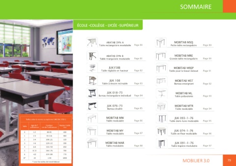 Table à dessin inclinable Page 83 Bureau enseignant Page 92