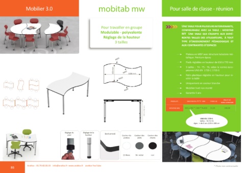 Mobilier 3.0 mobitab mw Pour salle de classe - réunion