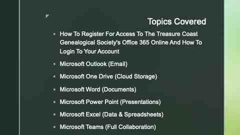 § How To Register For Access To The Treasure Coast Genealogical Society's Office 365 Online And How To Login To Your Account