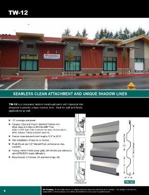 TW-12 is a concealed fastener metal wall panel with trapezoid ribs