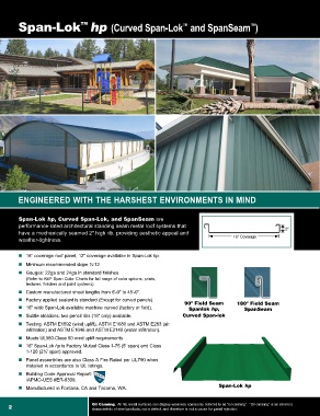 n 16" wide Span-Lok available machine curved (factory or field). Spanlok hp, SpanSeam