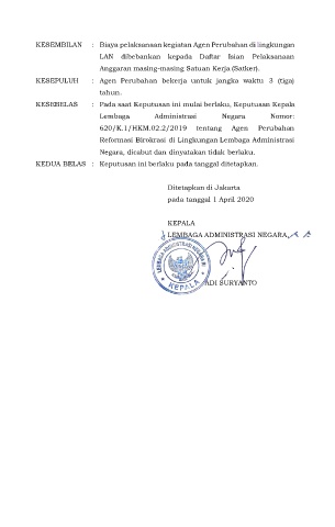 620/K.1/HKM.02.2/2019 tentang Agen Perubahan