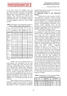 in the route chosen. For shopping trips, trip transport mode and route at higher level of rate when