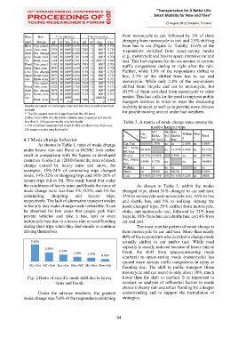 mode change were less than 5%, 0.5%, and 3% for changed trips, about 54% changed to car and taxi,