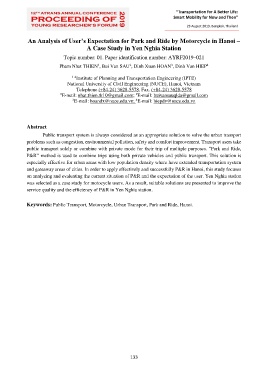 Keywords: Public Transport, Motorcycle, Urban Transport, Park and Ride, Hanoi.