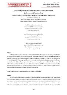 คาดการณ์อัตราการเกิดอุบัติเหตุตามที่แนะน าในคู่มือความปลอดภัยทางถนน (Highway Safety Manual, HSM) รวมถึงสามารถสรุปค่าพารามิเตอร์ต่างๆ