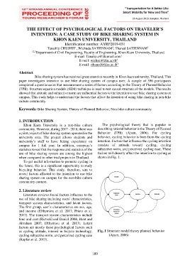 a pilot project of bike sharing system operated in the Behavior (TPB) (Ajzen, 2006). For cycling
