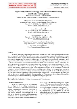 field survey. However, the implementation of the walkability by using VR technology, and to grasp the