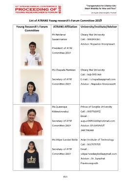Young Research’s Forum ATRANS Affiliation University/Institute/Advisor