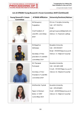 List of ATRANS Young Research’s Forum Committee 2019 (Continued)