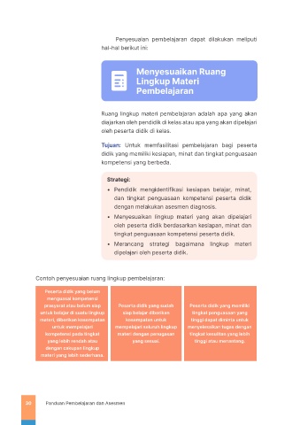 Contoh penyesuaian ruang lingkup pembelajaran: