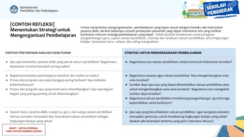 Menentukan Strategi untuk peserta didik, berikut beberapa contoh pertanyaan pemantik yang dapat membantu tim yang terlibat