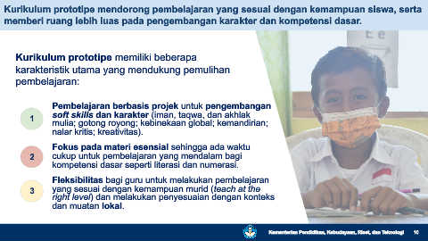 Kurikulum prototipe mendorong pembelajaran yang sesuai dengan kemampuan siswa, serta