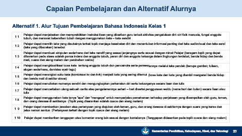 Alternatif 1. Alur Tujuan Pembelajaran Bahasa Indonesia Kelas 1