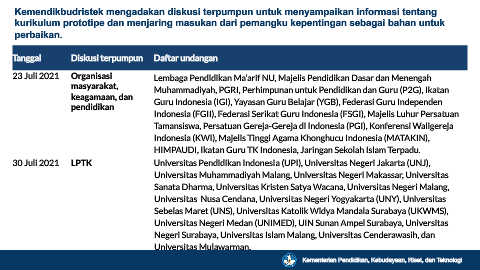 Kemendikbudristek mengadakan diskusi terpumpun untuk menyampaikan informasi tentang