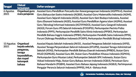 2021 mata pelajaran Guru Bahasa dan Sastra Indonesia (AGBSI), Asosiasi Guru Matematika Indonesia (AGMI),