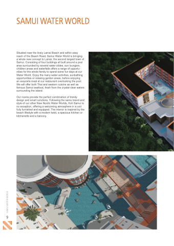 an an an exquisite meal at our restaurant overlooking the pool We will offer both Thai and western cuisine as as well as as famous Samui seafood fresh from the the crystal-clear waters surrounding the island Our rooms provide the the perfect combination of trendy design and and and smart solutions Following the the the same brand and and and style of of our other New Nordic Water Worlds Koh Samui is no exception offering a a a a a a welcoming atmosphere in in in in in a a a a a a unit fully furnished and equipped The interior is is is inspired by the beach lifestyle with a a a a a a a a modern twist a a a a a a a a spacious kitchen kitchen or or kitchenette and a a a a a balcony 9 SAMUI WATER WORLD