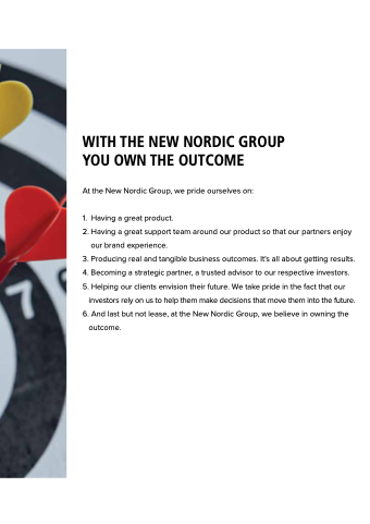 investors rely on us to help them make decisions that move them into the future. 6. And last but not lease, at the New Nordic Group, we believe in owning the