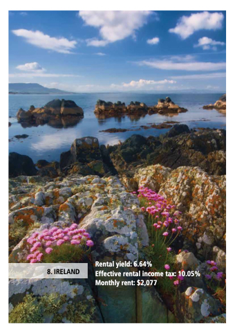 8. IRELAND Rental yield: 6.64% Effective rental income tax: 10.05% Monthly rent: $2,077