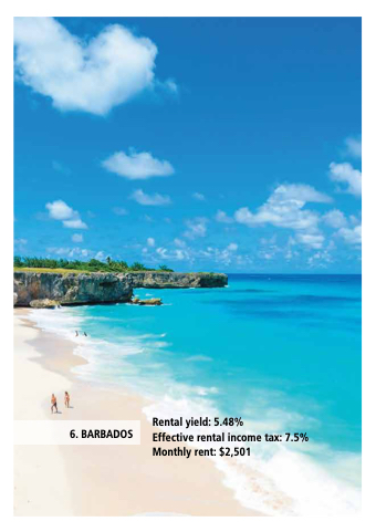 6. BARBADOS Rental yield: 5.48% Effective rental income tax: 7.5% Monthly rent: $2,501