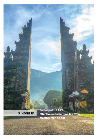 5.INDONESIA Rental yield: 8.61% Effective rental income tax: 20% Monthly rent: $2,486