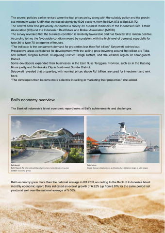 “The indicator is the consumer’s demand for properties less than Rp1 billion,” Setyowati pointed out. Prospective areas considered for development with the selling price hovering around Rp1 billion are Taba- nan District, Negara District, Klungkung District, Bangli District, and the eastern region of Karangasem District.