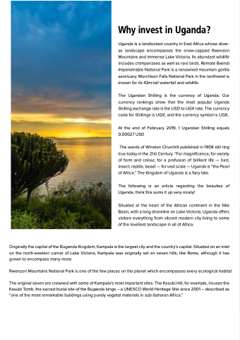 The following is an article regarding the beauties of Uganda, think this sums it up very nicely!