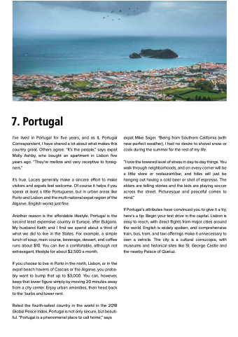 Rated the fourth-safest country in the world in the 2018 Global Peace Index, Portugal is not only secure, but beauti- ful. “Portugal is a phenomenal place to call home,” says