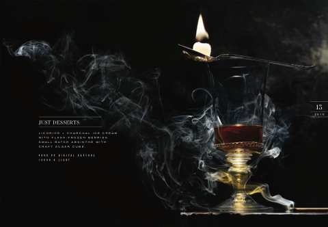 13 2019 JUST DESSERTS LICORICE + ChARCOAL ICE CREAM WITh FLASh-FROZEN BERRIES. SMALL BATCh ABSINThE WITh CRAFT SUGAR CUBE. 4800 PX DIGITAL CAPTURE 10000 K LIGHT
