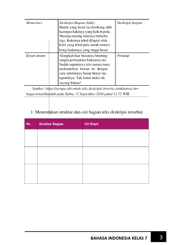 1. Menentukan struktur dan ciri bagian teks deskripsi tersebut.